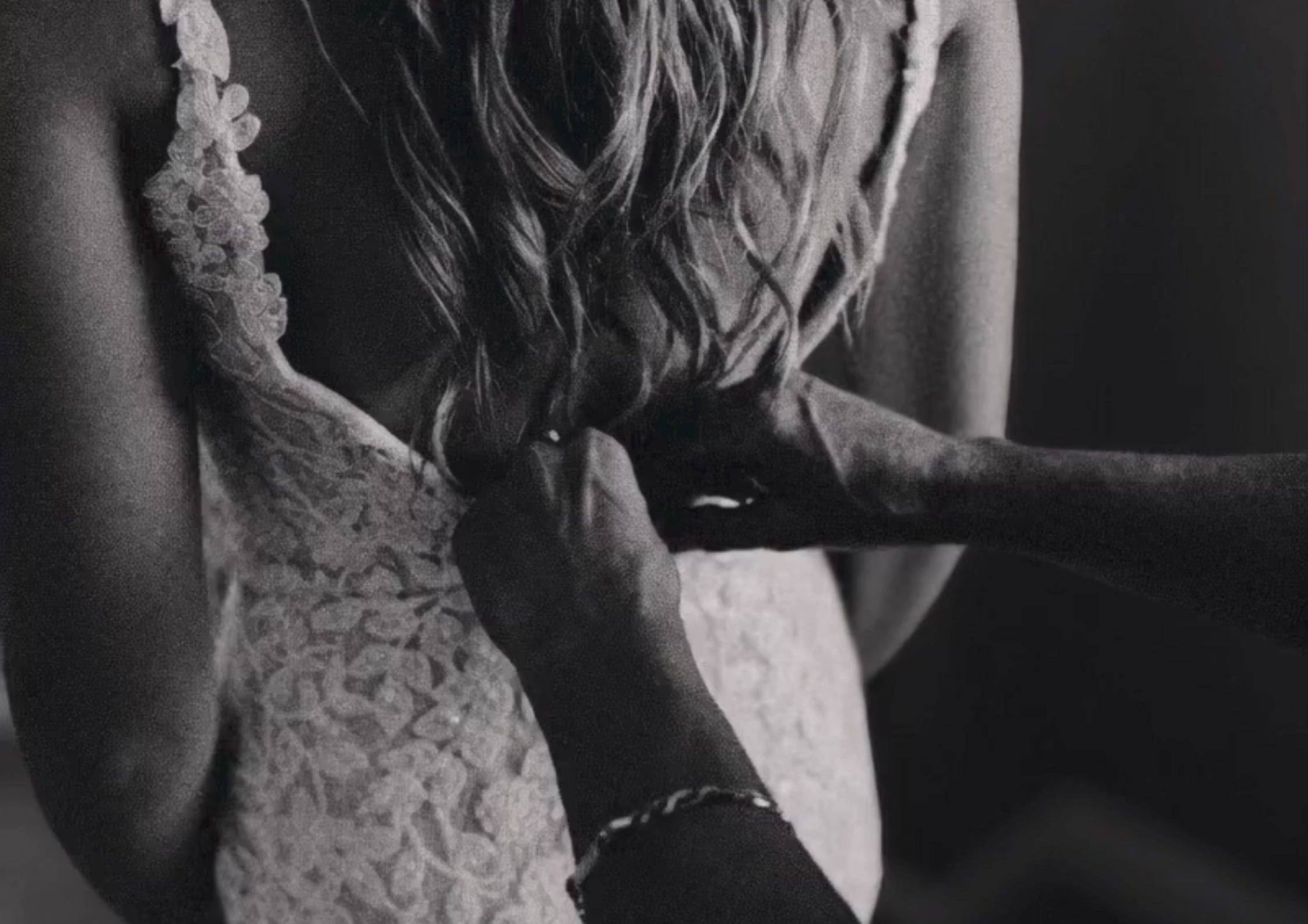 Professional on site wedding day dressing for the bride. A calm, steady presence offering gentle, hands on care for your gown and veil, ensuring you feel secure, comfortable, and beautifully photo ready for every moment.