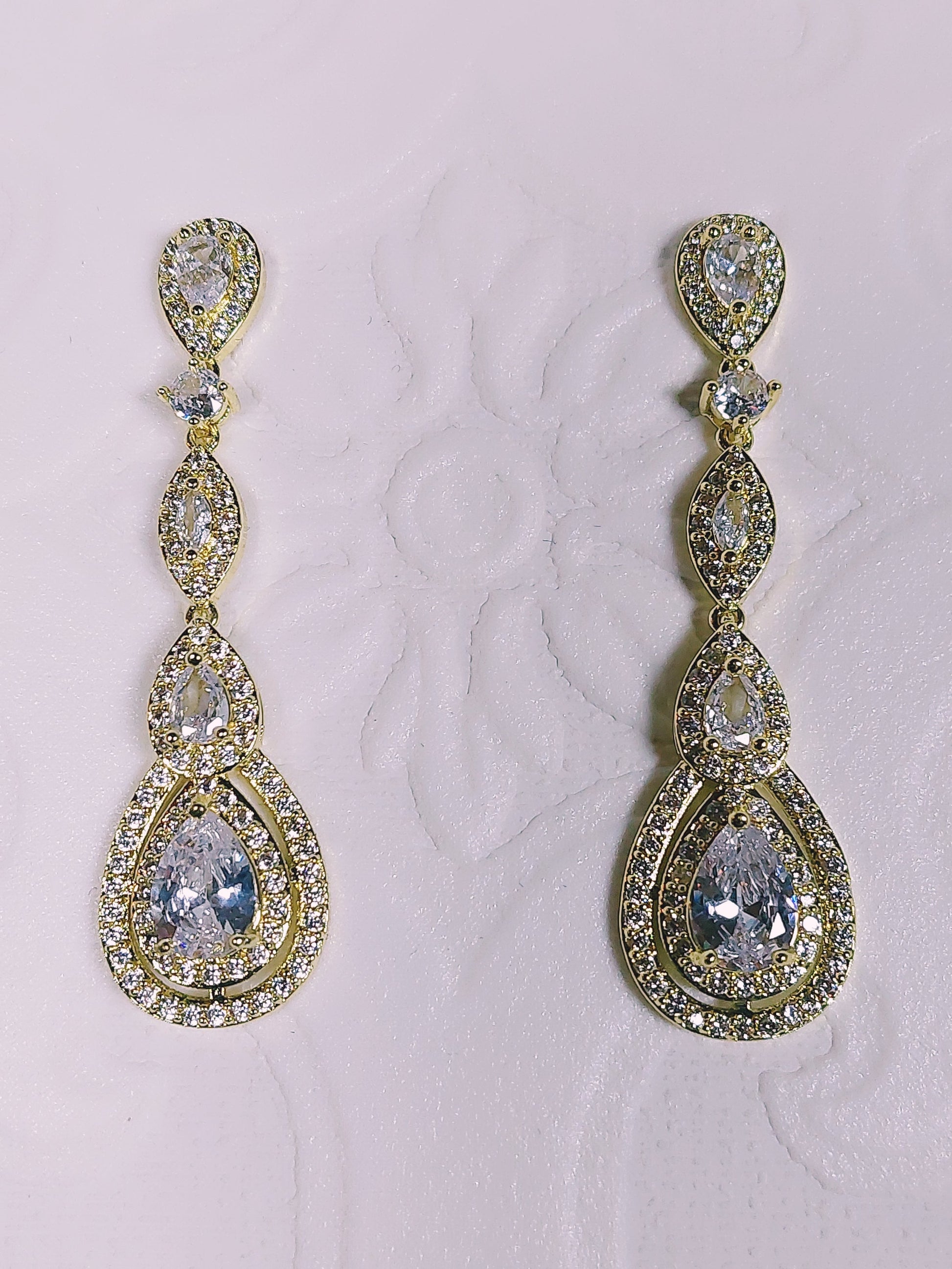 Lightweight at just 13g, these earrings are as comfortable as they are stunning, making them suitable for both traditional church weddings and modern celebrations. Crafted from shimmering cubic zirconia and durable zinc alloy, they offer a timeless charm that fits any bridal aesthetic.