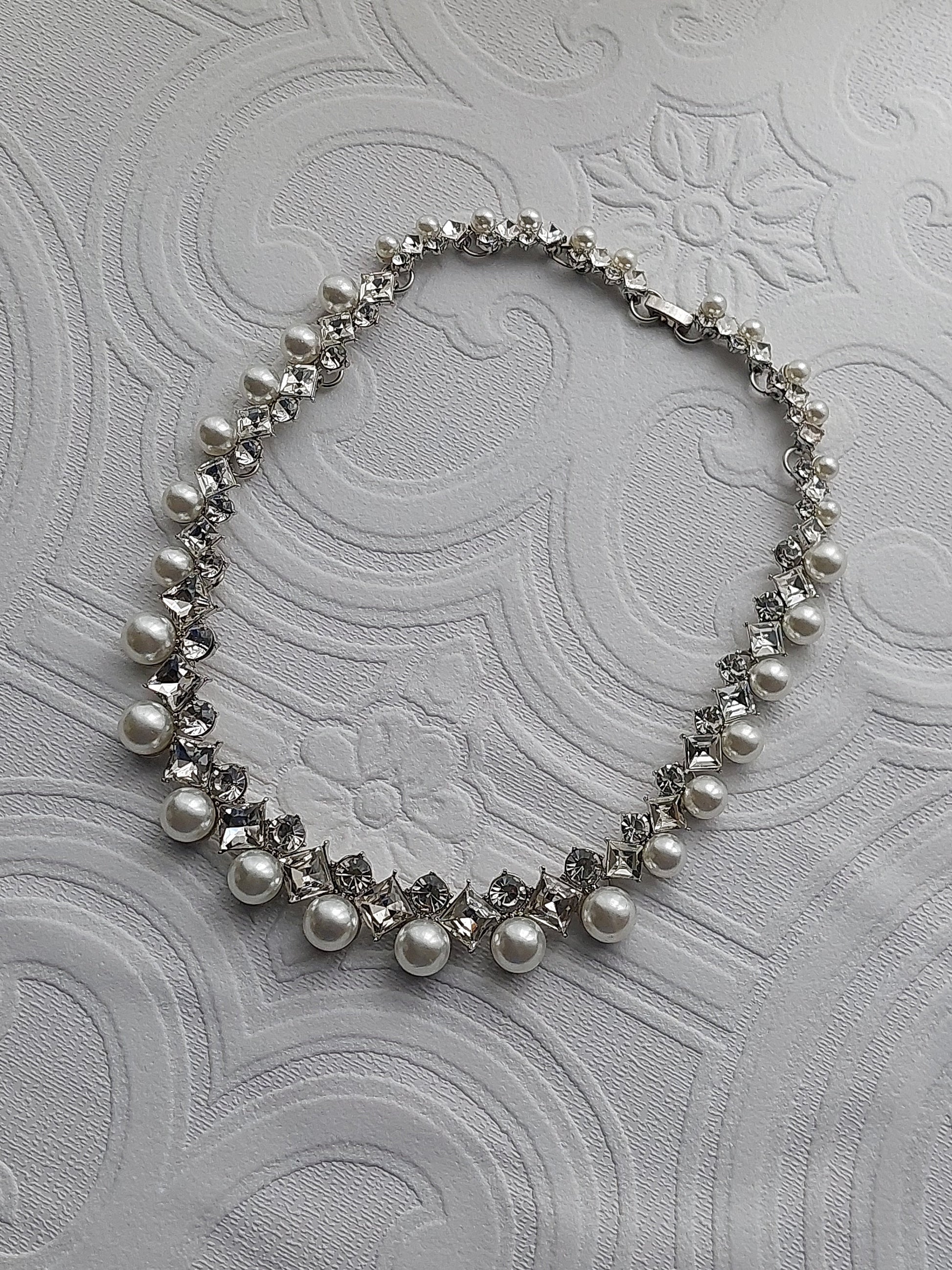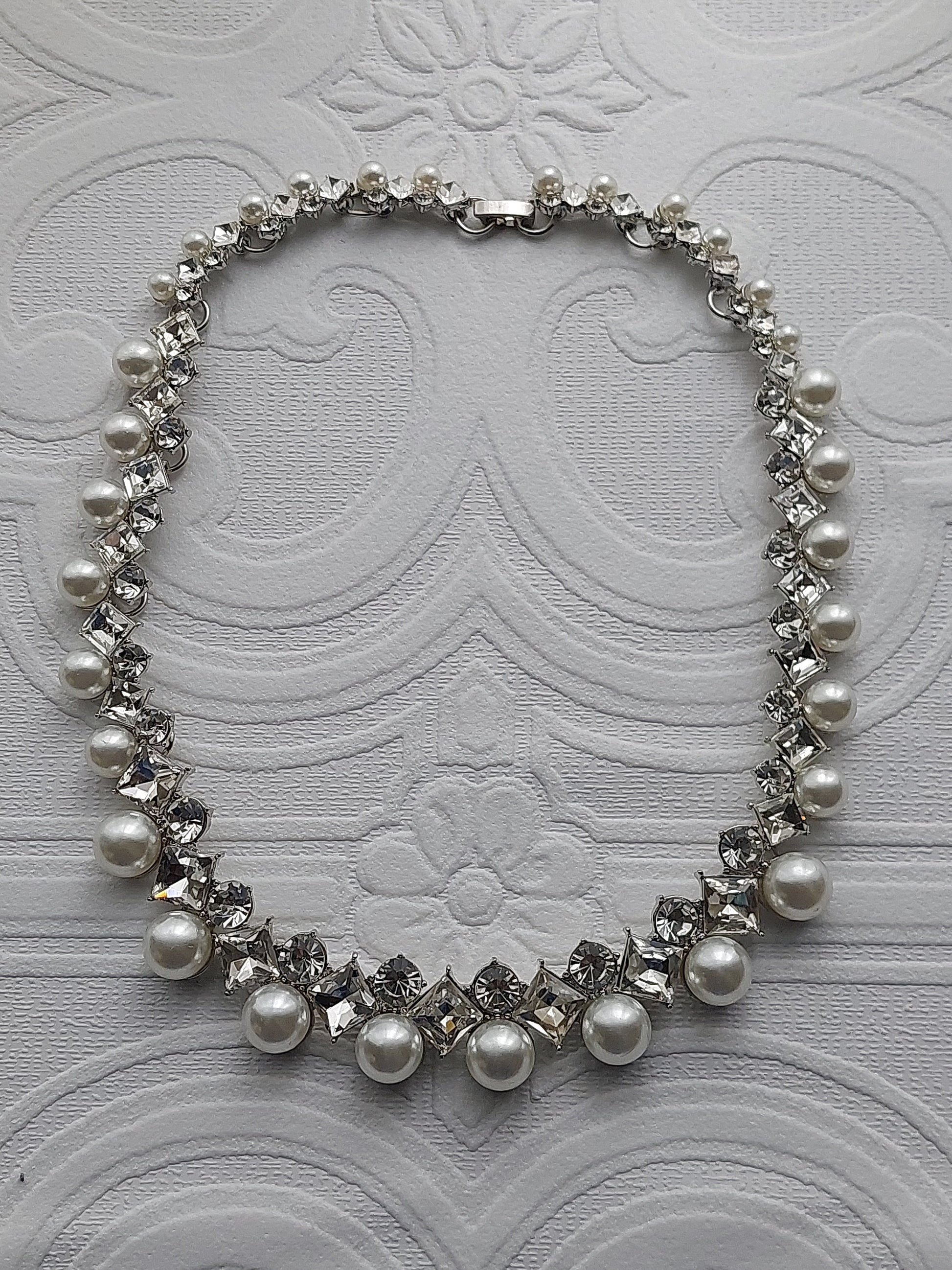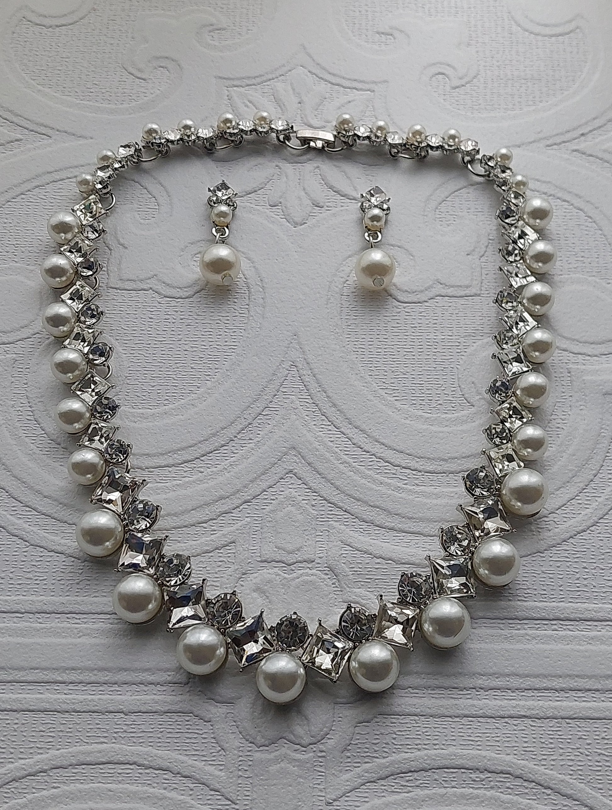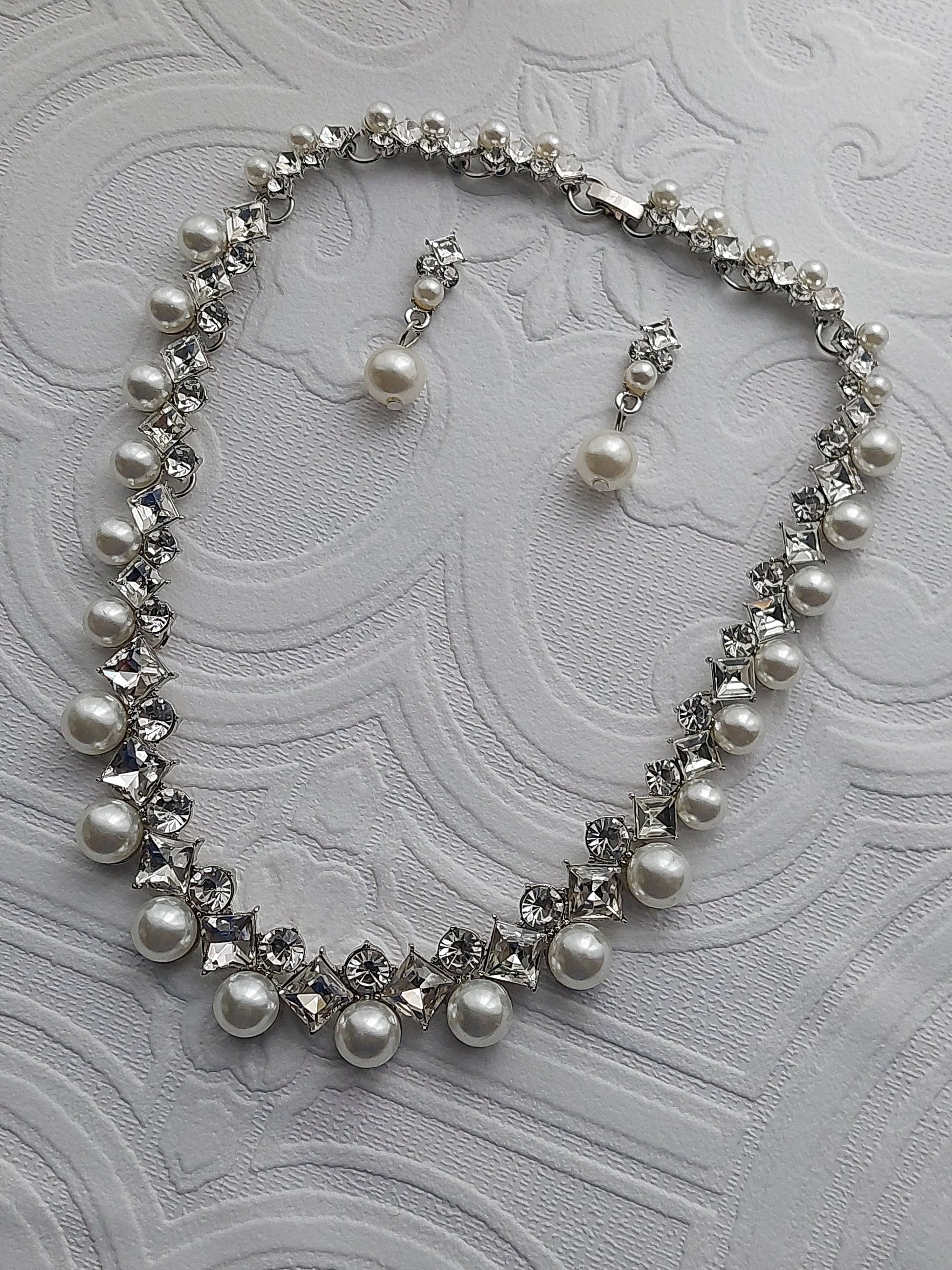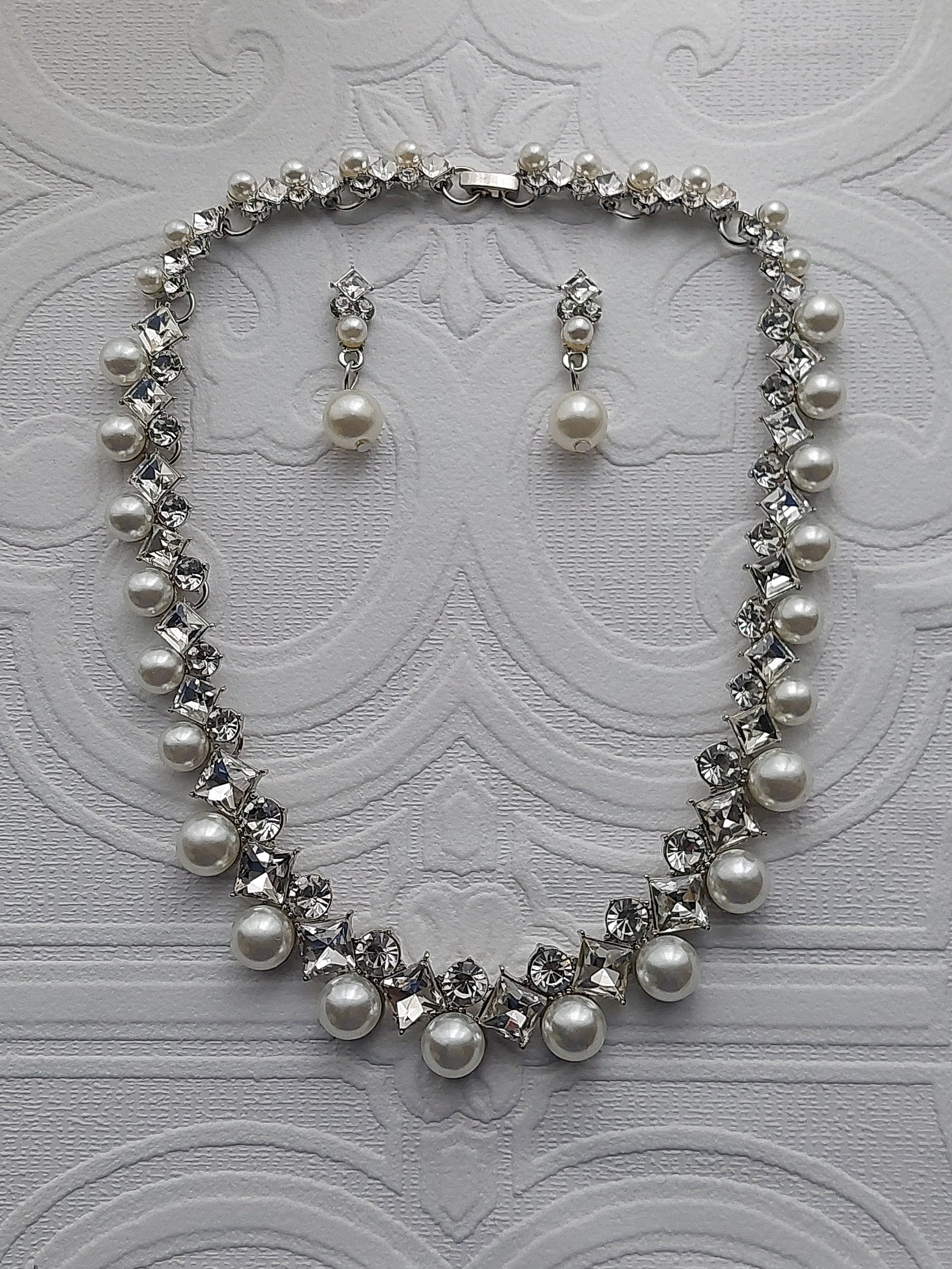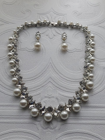 Designed to accentuate your beauty, the Crystal And Pearl Necklace Set is the ultimate accessory for your wedding day or any special event. Picture yourself walking down the aisle or dancing the night away, adorned with shimmering simulated pearls and delicate rhinestones that catch the light beautifully.